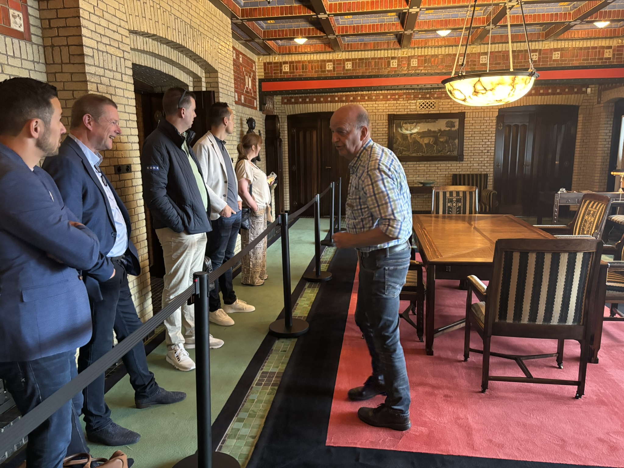 Op vrijdag 6 juni bracht VLR een bezoek aan Jachthuis Sint Hubertus in het Nationale Park de Hoge Veluwe. In dit meer dan honderd jaar oude moment bevindt zich een lift die de vijf verdiepingen van het jachtslot met elkaar verbindt. In 1917 werd de constructie van de complete installatie voltooid. Vanwege de monumentale status van het jachthuis, geldt de verplichting om de lift in goede conditie en oorspronkelijke staat te houden. Henri Luttje (Schindler Liften), de vaste onderhoudsmonteur voor deze lift, verzorgt de werkzaamheden en nam de leden mee voor een kijkje achter de schermen. De leden waren zichtbaar enthousiast over zowel de liftinstallatie als de techniek erachter. Naast de lift kregen de leden ook een inkijkje in de overige vertrekken van het jachthuis en de rijke geschiedenis van het monument.